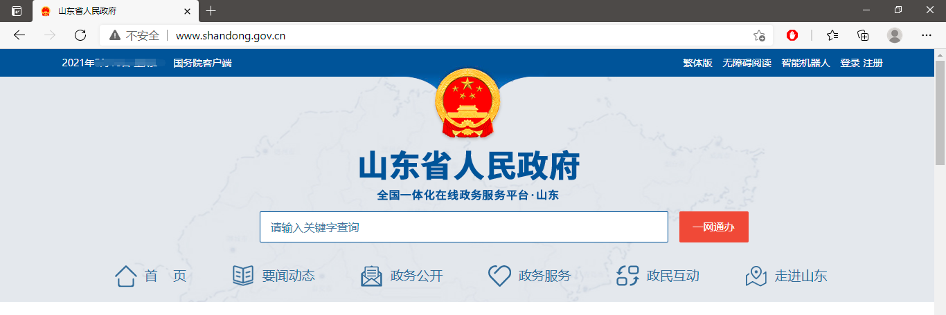 1.搜索“http://www.shandong.gov.cn/”或者“山东省人民政府”