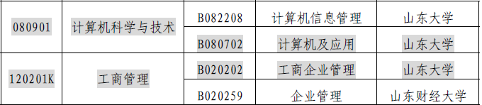 3.调整前的“080702 计算机及应用(本科)”选择“080901计算机科学与技术(本科)”进行申报;调整前的“020202 工商企业管理(本科)”选择“120201 工商管理(本科)”进行申报,