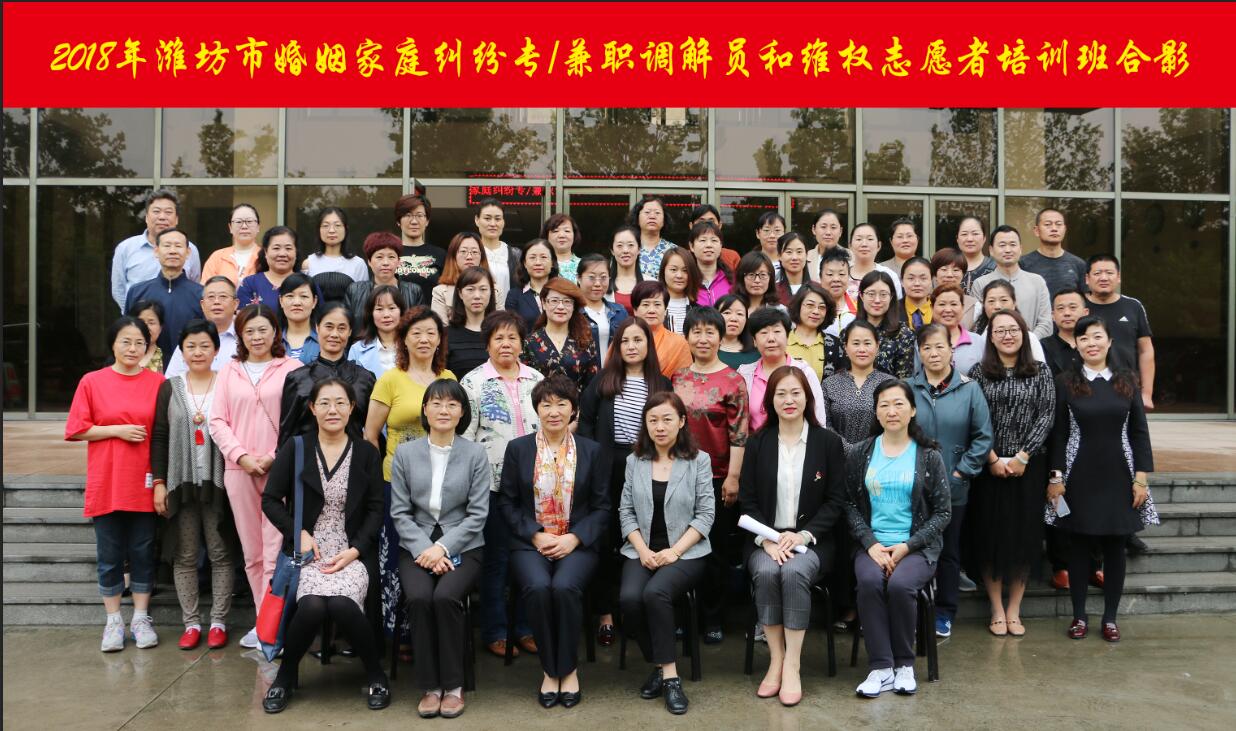 本次婚姻家庭纠纷专/兼职调节员和维权志愿者培训班由潍坊市妇联组织,为期5天,参加培训学员60人。培训班由学校继续教育学院负责联络、筹备和周密安排,服务工作得到了学员们的高度评价。