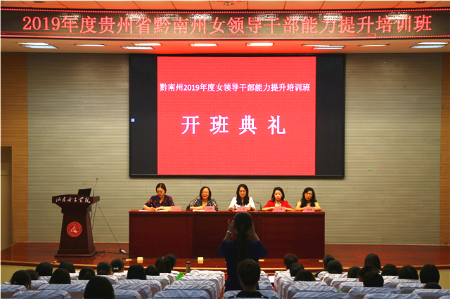 8月30日上午,2019年贵州省黔南州女领导干部能力提升班开班仪式在学校图书馆一楼报告厅举行。学校党委副书记王淑霞、黔南州妇联副主席石蕾出席开班仪式并讲话。贵州省黔南州全体参训女领导干部参加开班仪式。开班仪式由继续教育学院负责人主持。