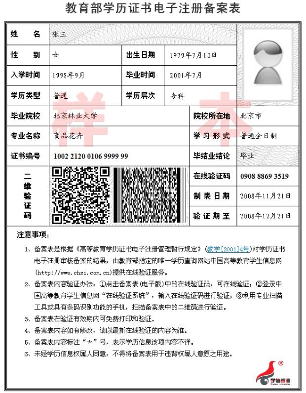 ①在“中国高等教育学生信息网”(www.chsi.com.cn)上打印的“学历证书电子注册备案表”(打印版)(样表附后)。
