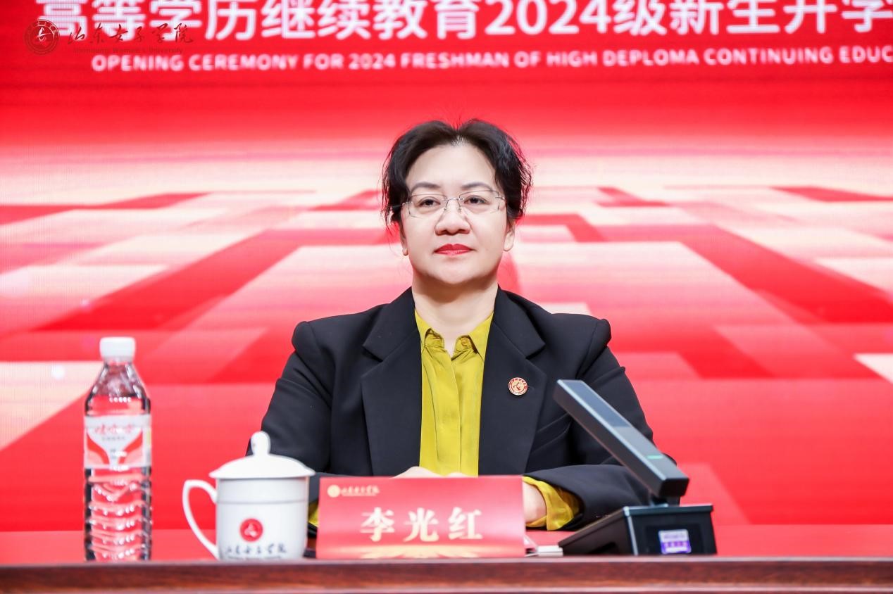 3月30日上午,学校高等学历继续教育2024级新生开学典礼在图书管报告厅举行。学校党委副书记、校长李光红出席典礼并致辞,教学质量监控与评估处、招生就业处、数据科学与计算机学院、马克思主义学院、继续教育学院、教育学院和财务处的相关负责人及来自各地函授站点200余名师生代表参加典礼。典礼由副校长刘恩允主持。
