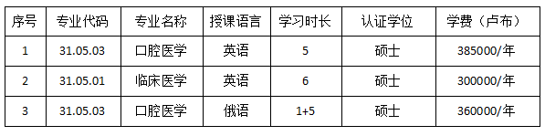 本科招生专业设置(五年一贯制 俄语授课)